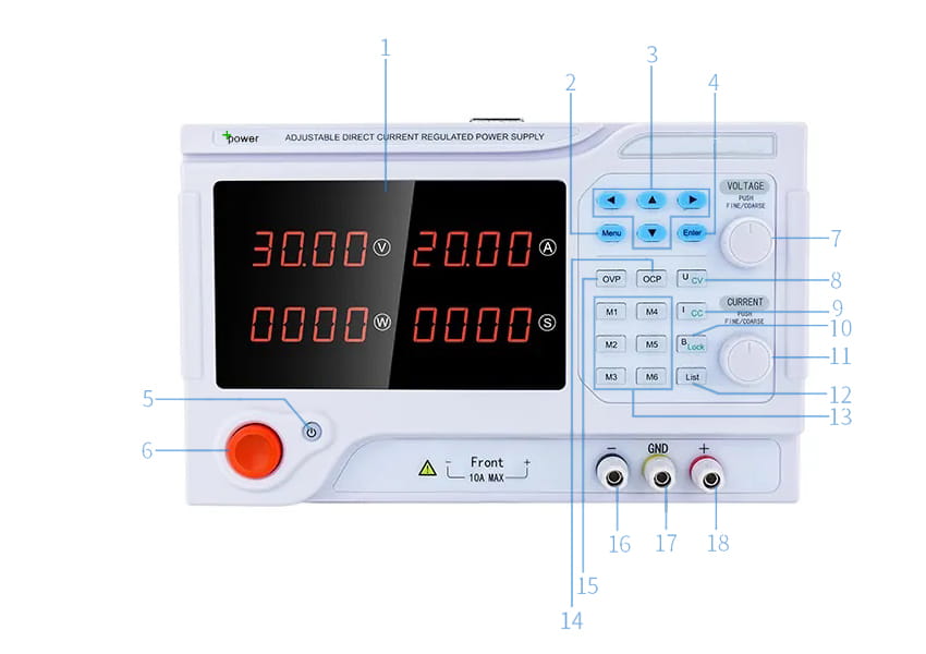 Zasilacz laboratoryjny +POWER MY-L3020P o regulowanym napięciu wyjściowym w zakresie 0-30V oraz o prądzie do 20A. Urządzenie niezbędny w każdym warsztacie, świetnie sprawdzi się serwisie elektronicznym jak i w domowym warsztacie. Zasilacz posiada możliwość zapamiętania 6 ustawień. Funkcja "LIST" która pozwala zaprogramować sekwencje 6 ustawień prądu, napięcia oraz czasu trwania każdej sekwencji. Po uruchomieniu sekwencji zasilacz po określonym czasie przechodzi do kolejnego ustawienia (prąd/napięcie).