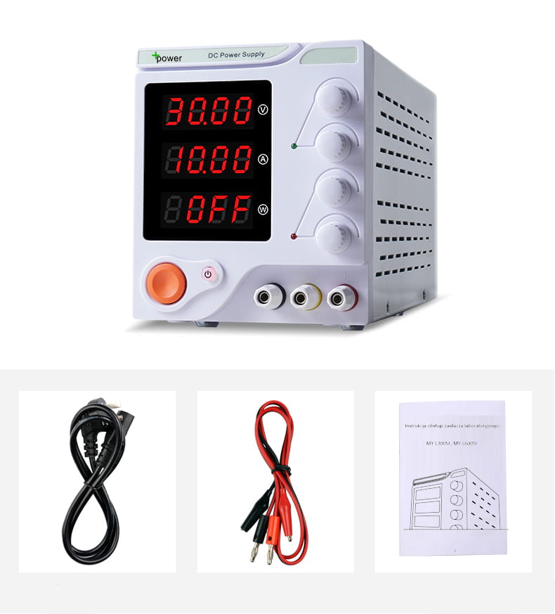 Zasilacz laboratoryjny +POWER MY-L3005F o regulowanym napięciu wyjściowym w zakresie 0-30V oraz o prądzie do 5A. Urządzenie niezbędny w każdym warsztacie, świetnie sprawdzi się serwisie elektronicznym jak i w domowym warsztacie.